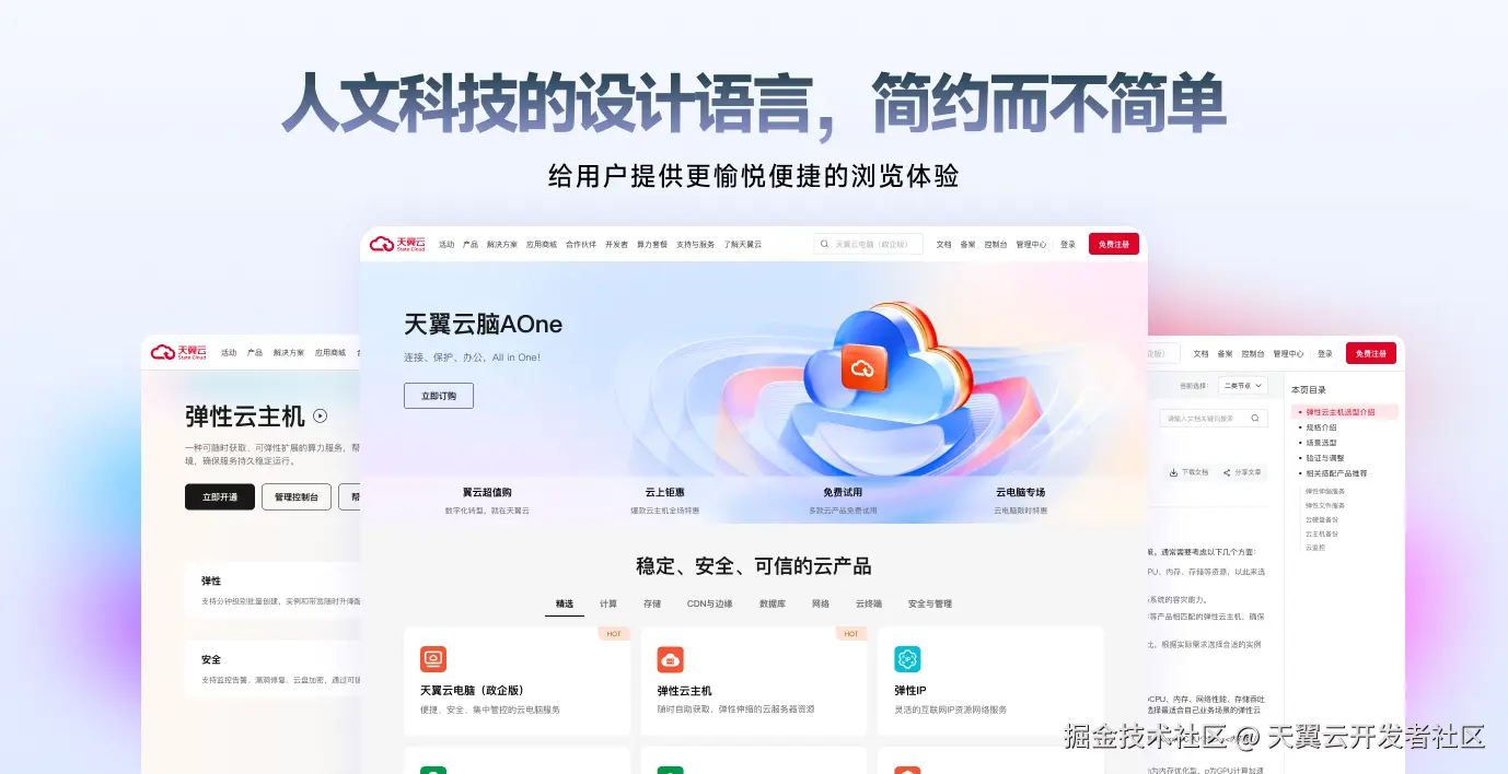数智时代,天翼云作为数字中国建设主力军,在助推经济社会全面转型升级进程中扮演着重要角色。以此次官网升级为契机,天翼云将持续坚持科技创新,聚焦用户体验,以更加领先的产品以及完善的服务,携手业界伙伴全力推动数字经济和实体经济深度融合,赋能千行百业向智向新,共赢高质量发展新未来。