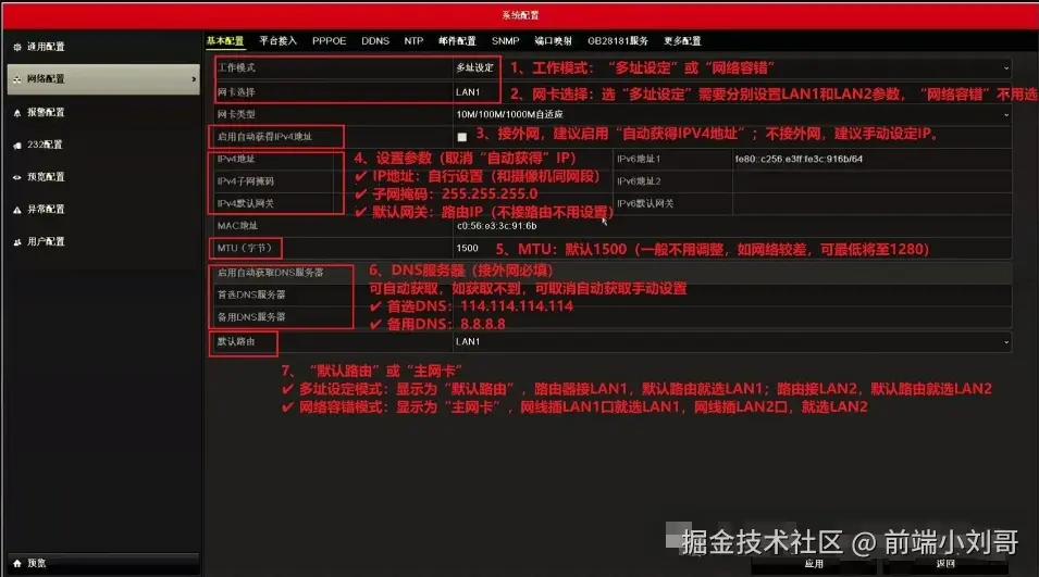 通过上述步骤,用户可以有效地配置双网口NVR,实现对不同网段摄像机的管理和监控。这种配置不仅提高了监控系统的可靠性,也使得网络管理更加灵活和高效。在实际操作中,用户应根据自己的具体网络环境和需求进行相应的配置调整,以确保监控系统的最佳性能。