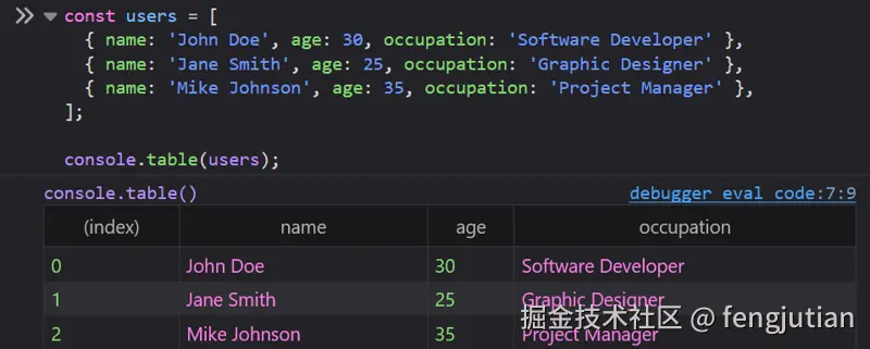 使用此方法在控制台中以表格格式显示数据,从而更容易查看和分析数据。