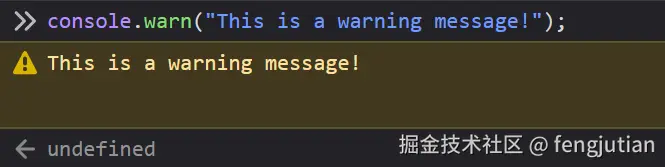 使用黄色显示警告消息(在大多数浏览器中),使其易于与常规日志区分开来。