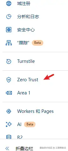 1.打开 dash.cloudflare.com/ 登录账号,再左侧任务栏选中zero trust