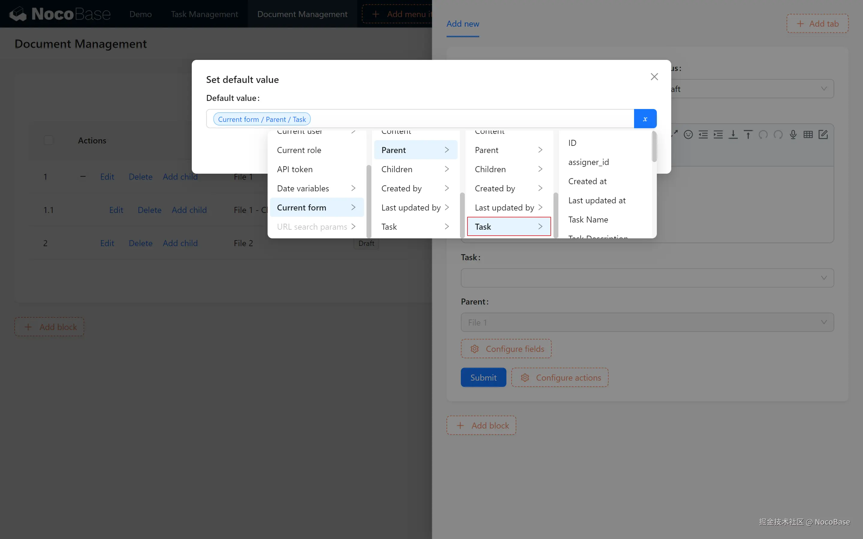 - 添加表单区块关联。