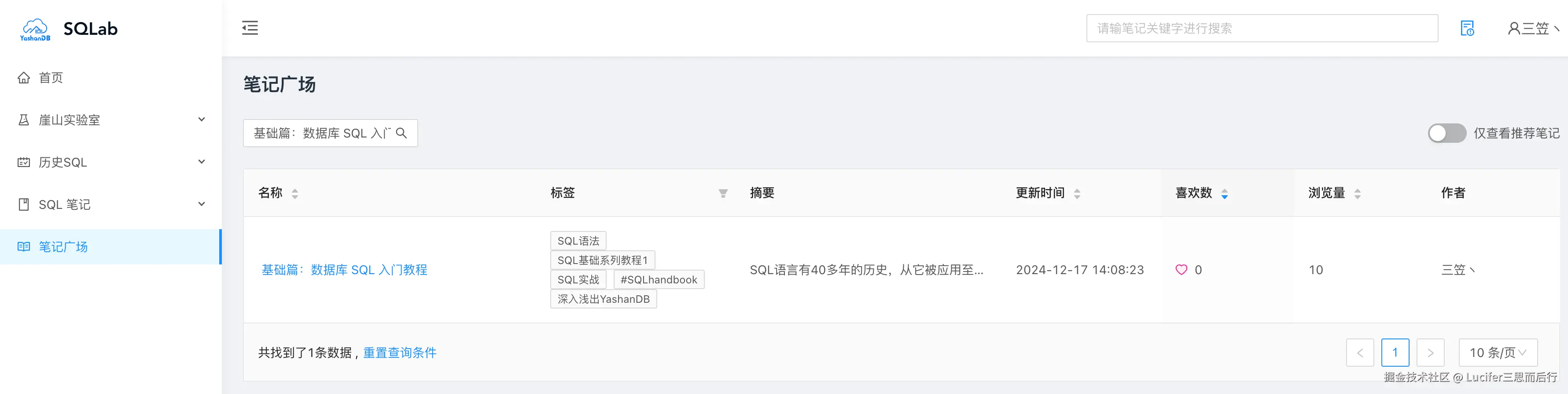 我使用 SQLab 写了一篇学习笔记,大家可以在笔记广场搜索查阅,跟随一起练习: