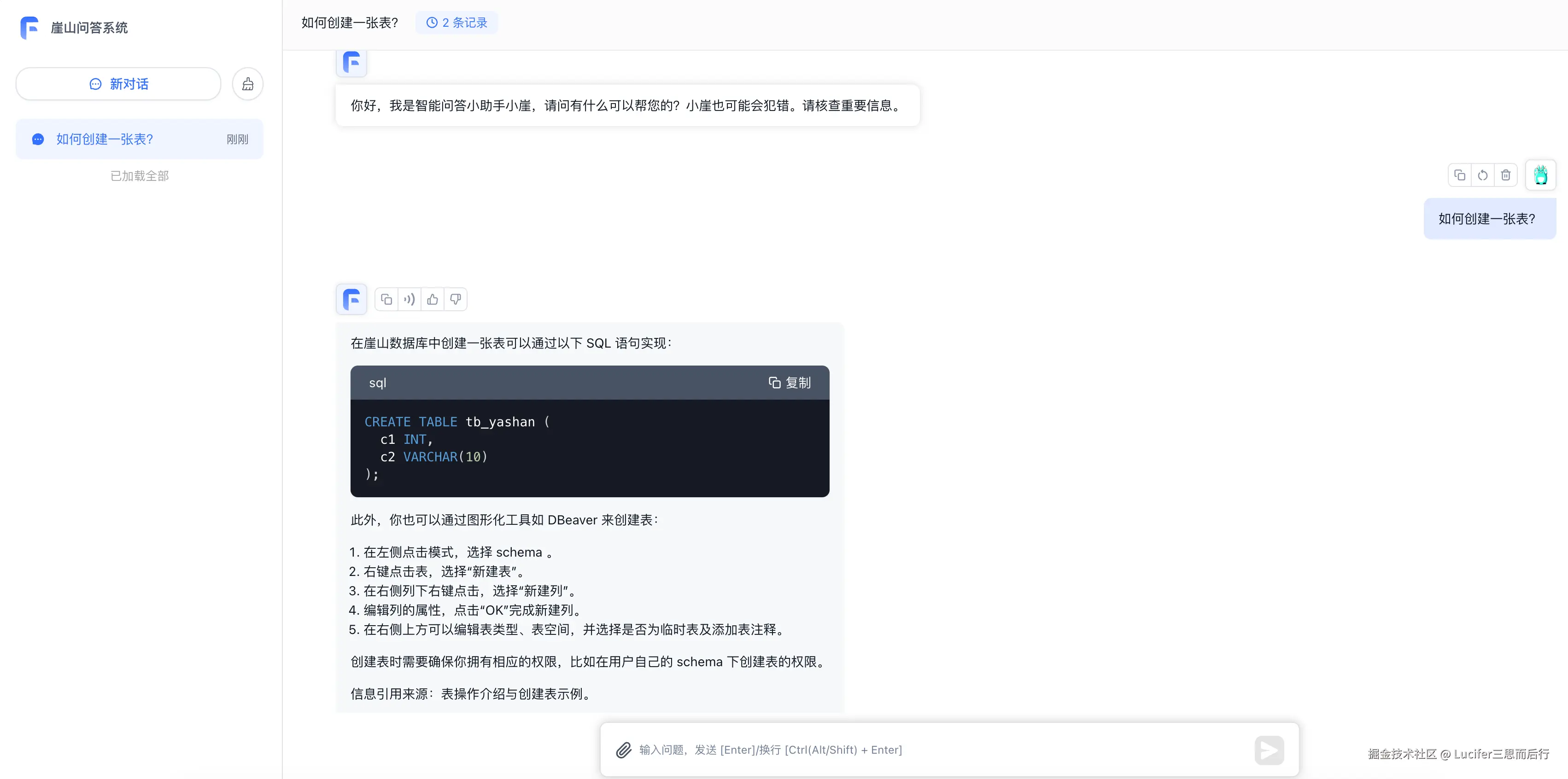 比如我问一个简单的建表问题: