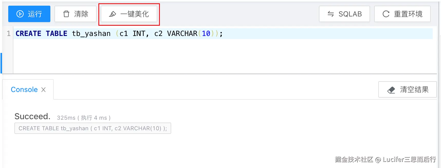 一键美化功能可以实现 SQL 格式化: