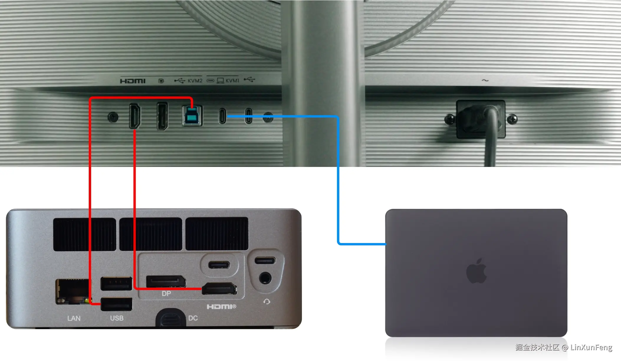 在这种场景下,就得想办法用 一套键鼠 控制 两台主机了。这台专业编程显示器提供的 KVM 多主机切换功能,就可以很好解决这个问题。