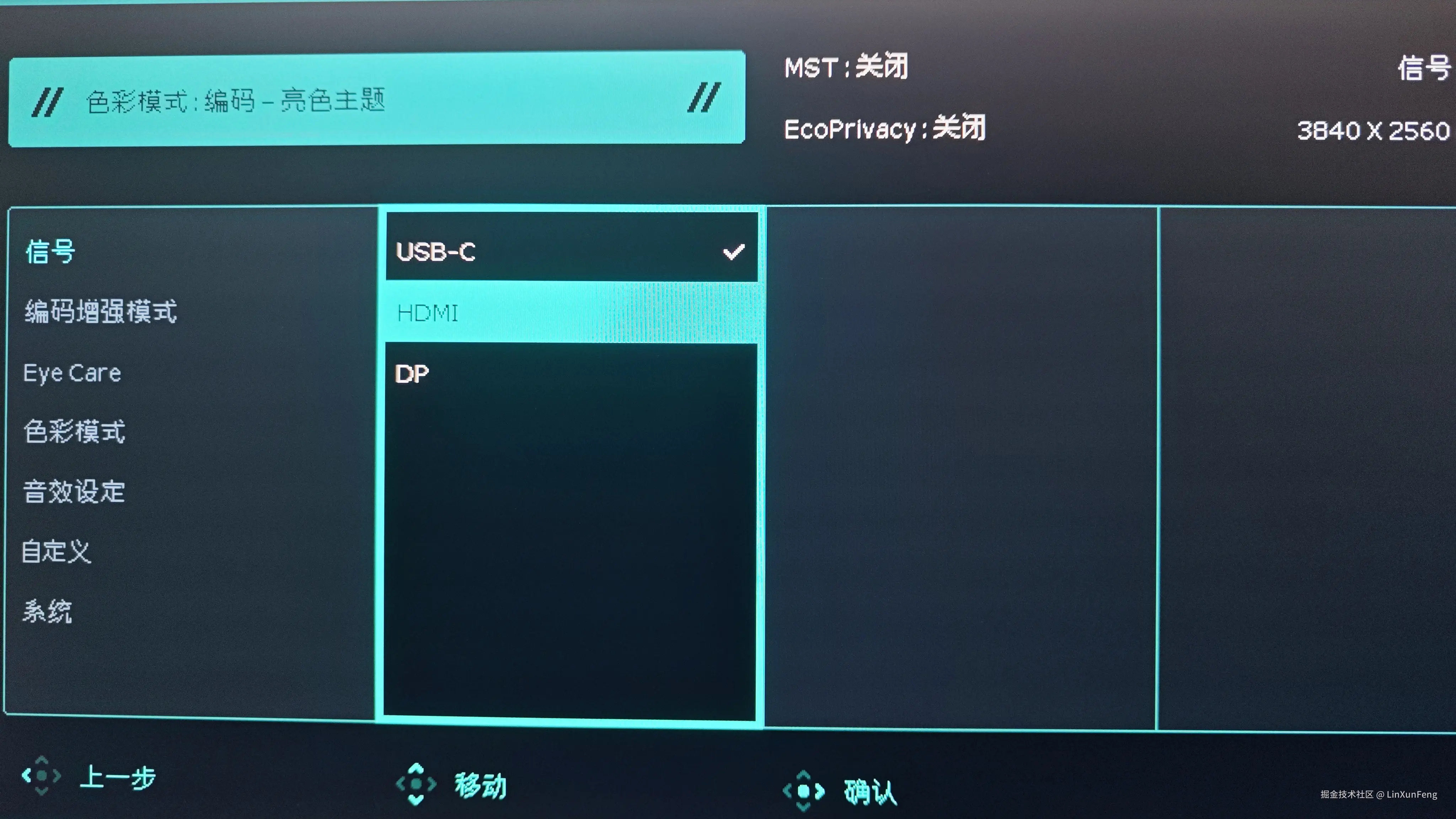 然后,切换显示器的信号源(USB-C、HDMI)即可: