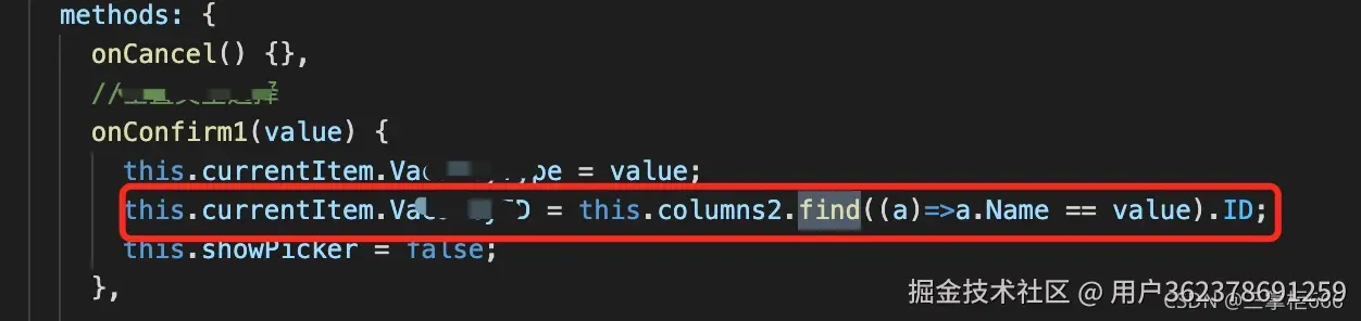 2.获取数组中选择的item中的ProjectName和ProjectNewNo,和数组中对应的一致的第一个元素