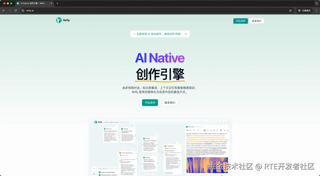 Refly 由多线程对话、知识库集成、上下文记忆和智能搜索驱动,目前已经内测上线。