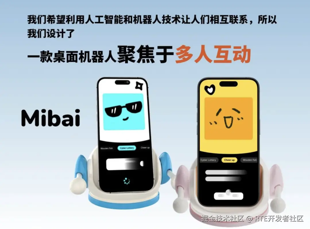 多人互动桌面机器人,结合语音交互、情绪识别和远程控制等功能,打造一个具有个性化和社交属性的桌面伴侣。硬件形态小巧,并支持无线充电。