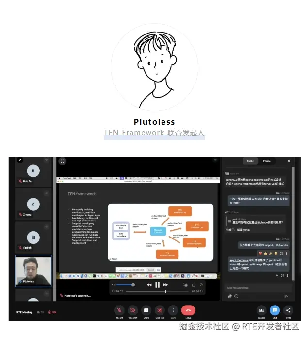 voice agent 搭建框架 TEN 的 Plutoless 分享了第一时间集成 Gemini Multimodal Live API 的一手经验,并介绍了 TEN 为简化 voice agent 开发流程 所做的更新和优化。