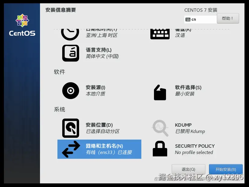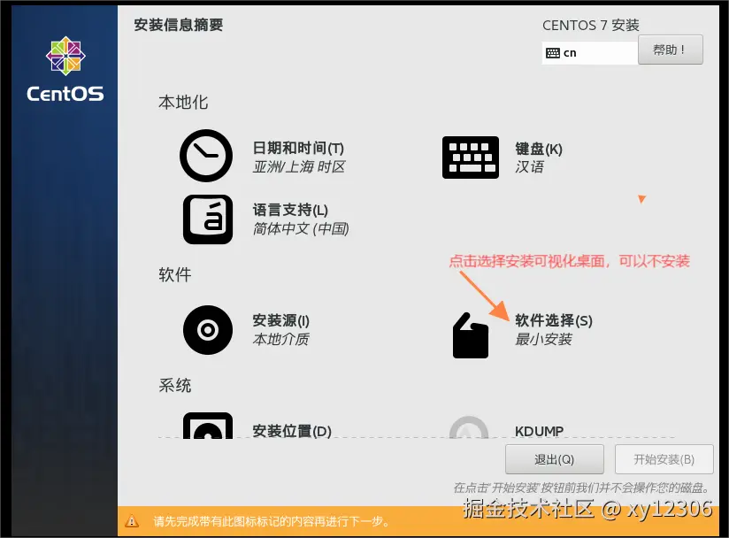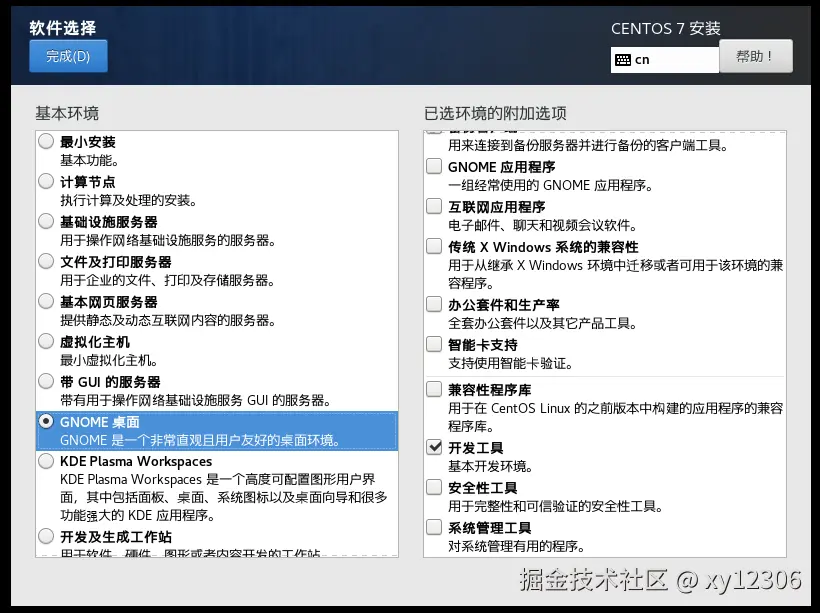 如果需要安装可视化界面,按照以下图片选择(不需要安装桌面的话,直接选择最小安装即可)