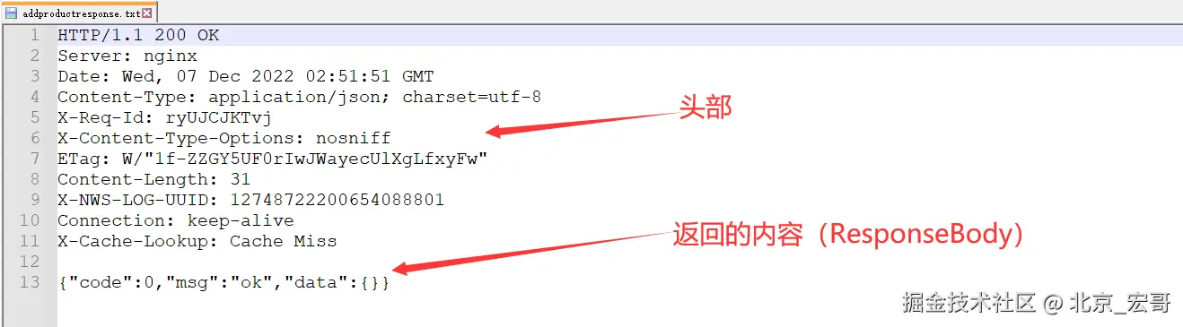 同样,文件中的内容也是有返回头部以及body的。
