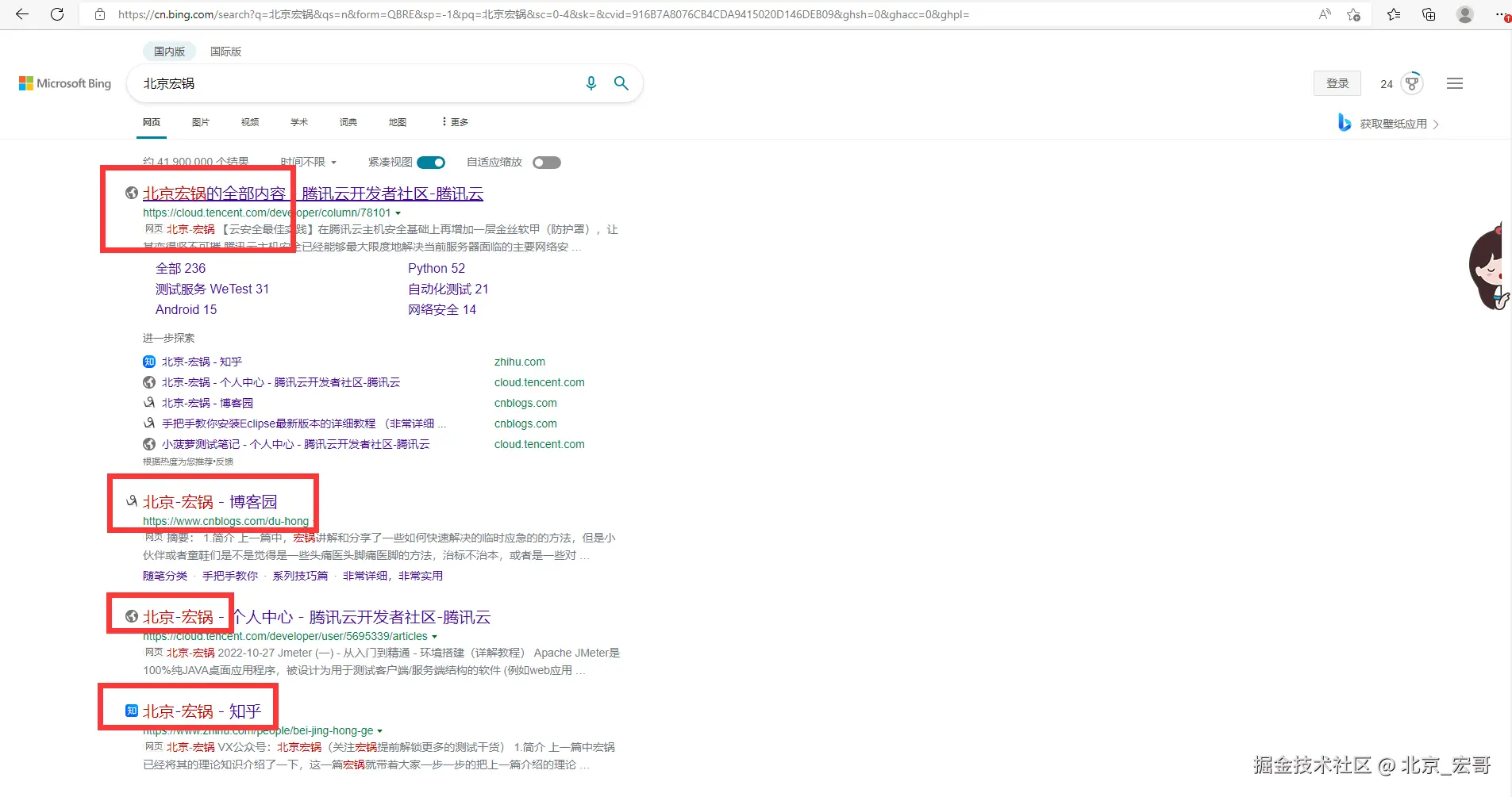自动应答方法三:通过Jscript进行自动应答。宏哥这里演示的demo是,通过必应搜索“北京宏哥”,然后修改响应结果,将“宏哥”修改成“宏锅”。具体操作步骤如下: