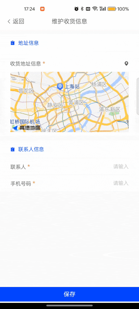 在物流配送等场景中,通常寄件人/收件人需要维护地址信息,使用地图组件可以帮助用户更直观的维护数据,为用户提供更好的体验。