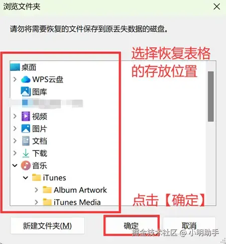 第3步: 点击【导出】后,在弹窗中选择恢复表格的新存放位置。