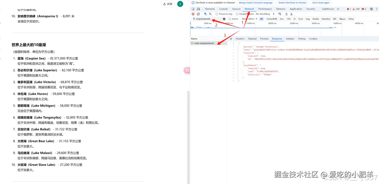 第二步,依次网络(Network)- 搜索requirements- 打开chat-requirement。