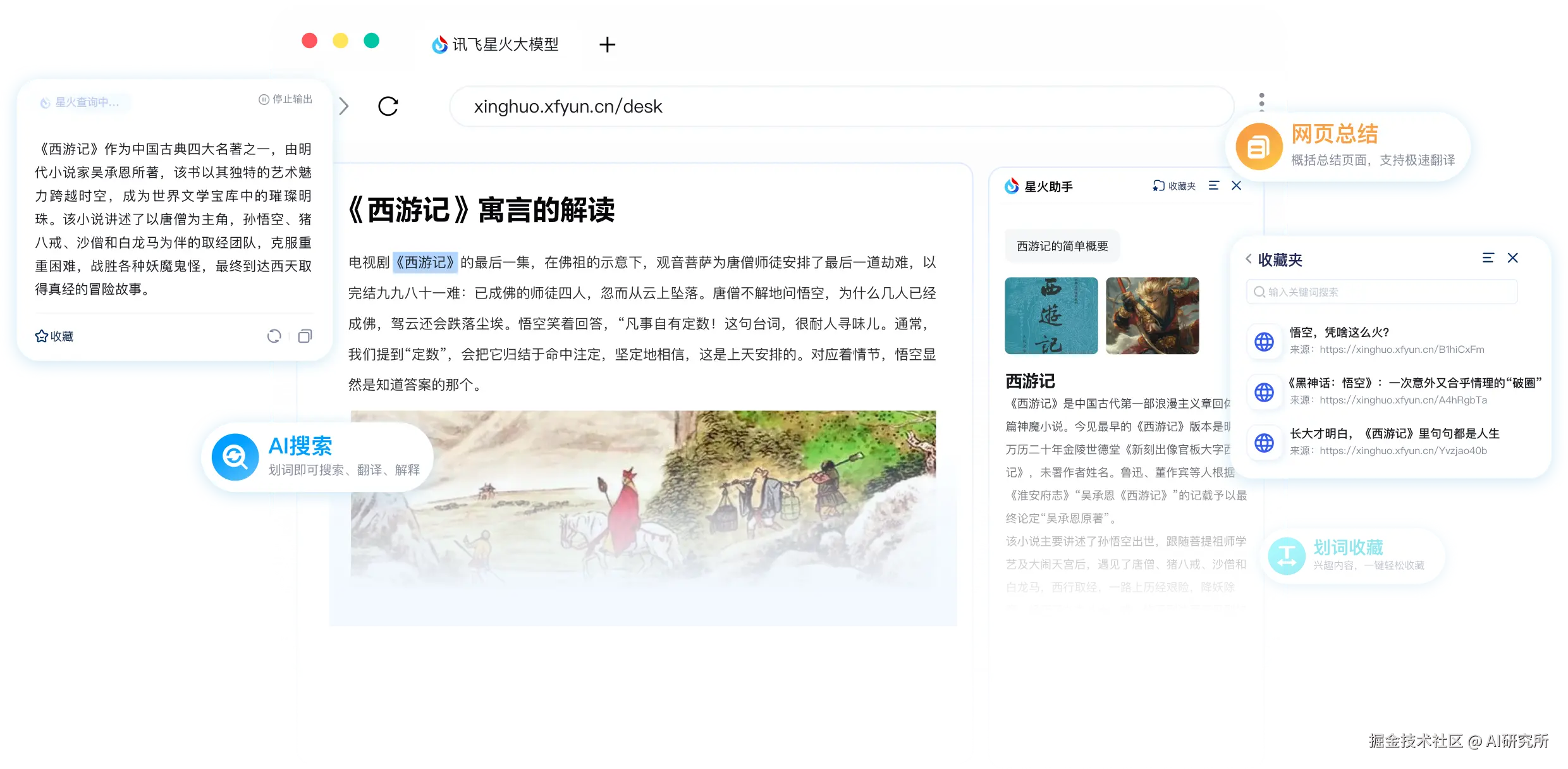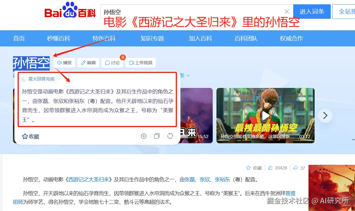问问星火中支持对划词文本结合网页环境内容做个性化回答,比如你打开的是动漫《火影忍者》里面的孙悟空的网页,通过划词孙悟空,问问星火给的回答是《火影忍者》中的孙悟空介绍;同理,《西游记之大圣归来》里的孙悟空网页亦然。