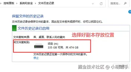 妙招二:使用系统自带的文件历史记录功能找回删除的视频