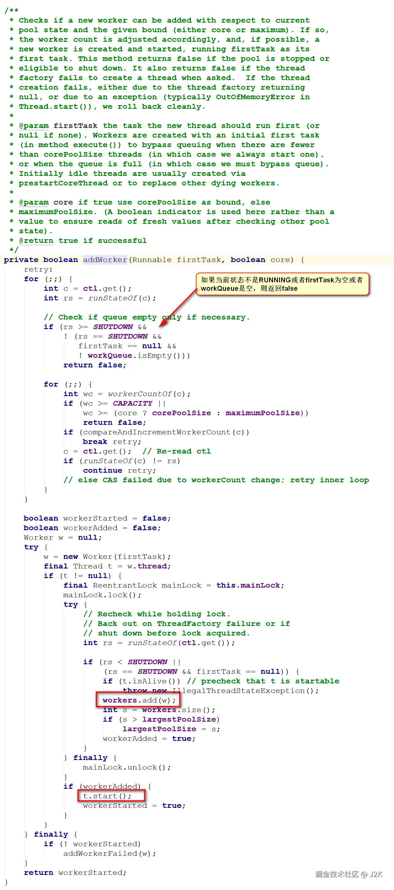 还有队列长度(workQueue)方面,假如使用了有界队列,像ArrayBlockingQueue,并且设置的长度很短,在 for 循环不断提交任务时,很容易出现队列快速被填满的情况。