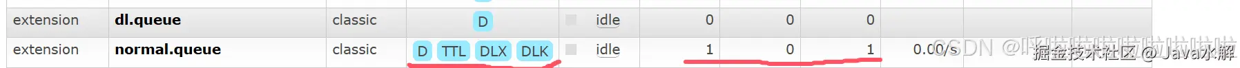 队列达到最大长度 :当队列设置了最大长度限制,并且消息数量达到这个限制时,新进入队列的消息会导致最早的消息被挤出队列。如果被挤出的消息对应的队列配置了死信交换机,这些消息会成为死信并被发送到死信队列。