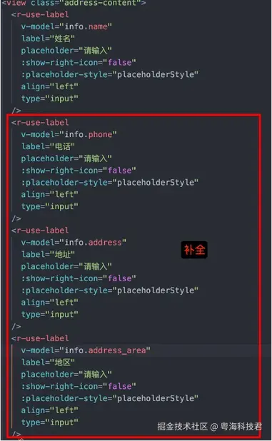 给出 info 中 name 的 dom 结构之后,AI 代码助手根据 name 的结构补全了剩下的属性