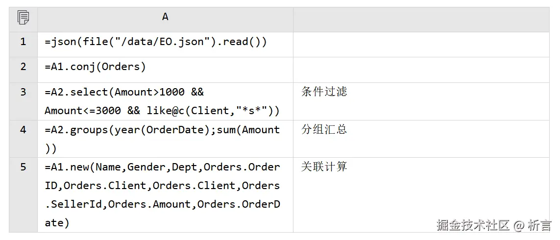 特别地,SPL 对文件的很好支持使得文件也拥有强计算能力,这样将数据湖数据存储在文件系统中也可以获得与数据库接近甚至超越的计算能力。SPL 不仅能计算文本,还支持 JSON 等多层数据格式处理,这样 NoSQL 以及 RESTful 等数据不用转换就可以直接使用,非常方便。