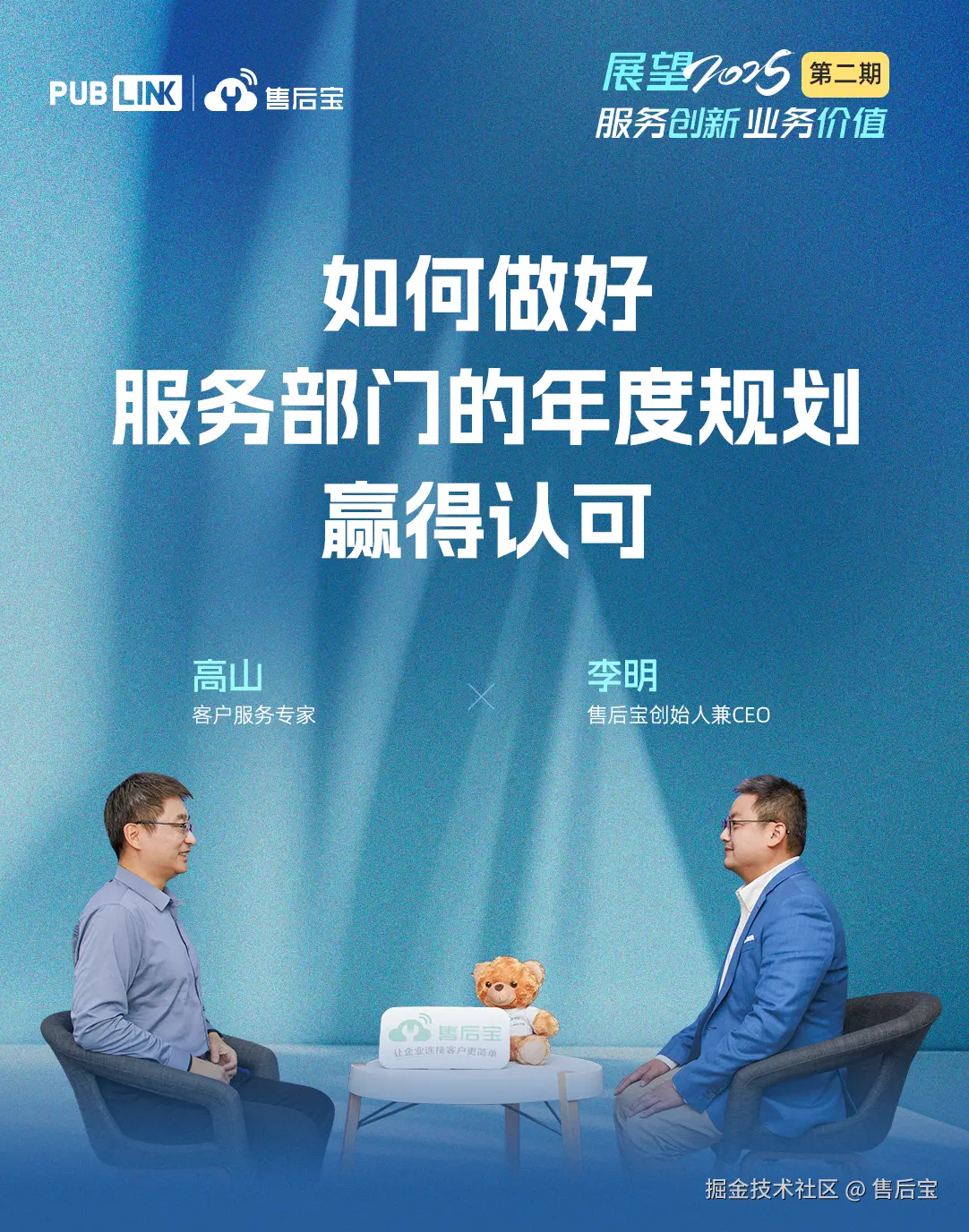 第二期直播将于12月19日(本周四)19:00在售后宝客服云视频号直播间正式开启,我们邀请到客户服务专家高山,与售后宝创始人兼CEO李明共同探讨如何做好服务部门的年度规划,赢得认可。