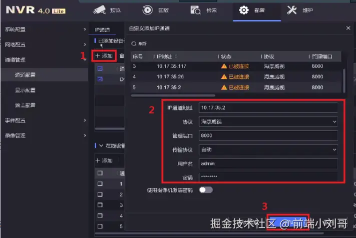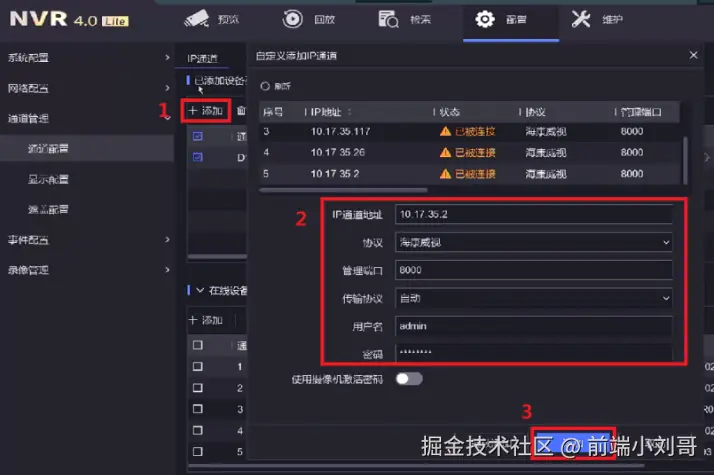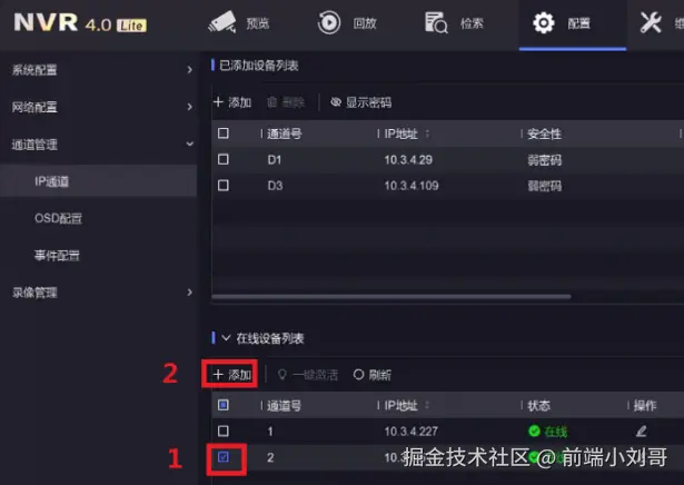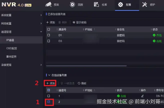 操作路径:配置—通道管理—通道配置—IP通道。