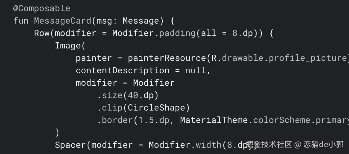 其实对于 SwiftUI 开发者而言,Decorator 模式应该并不陌生,因为 SwiftUI 的设计本身就支持 Decorator 模式,开发者应用于视图的每个 modifier 行为都是一个 view wraps, 其实如果你再对比 Compose 里的 Modifier ,大家看起来也是“殊途同归”: