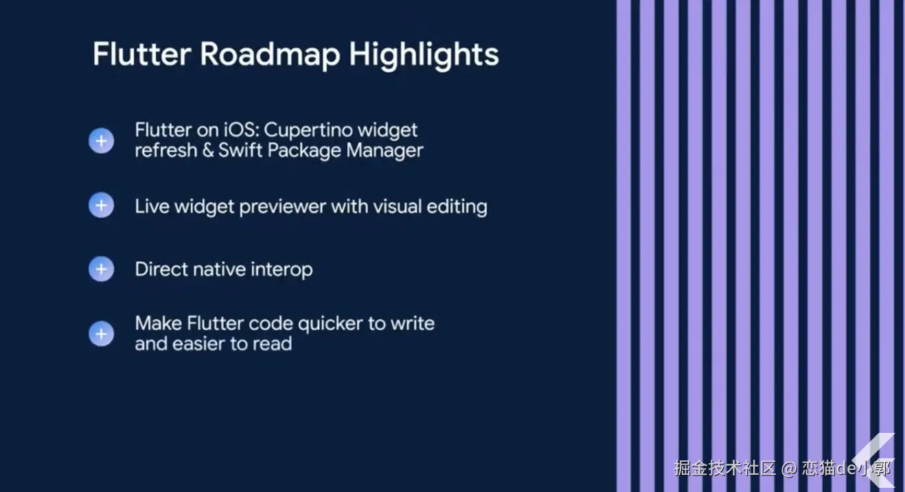 在刚刚过去的 FlutterInProduction 活动里,Flutter 官方除了介绍「历史进程」和「用户案例」之外,也着重提及了未来相关的 roadmap ,其中就有 3.27 里的 Swift Package Manager 、 Widget 实时预览 和 Dart 与 native 平台原生语言直接互操作支持等 case ,但是在最后 Flutter 还提到了一个有趣的点:“Make Flutter Code quicker to write and easier to read” 。