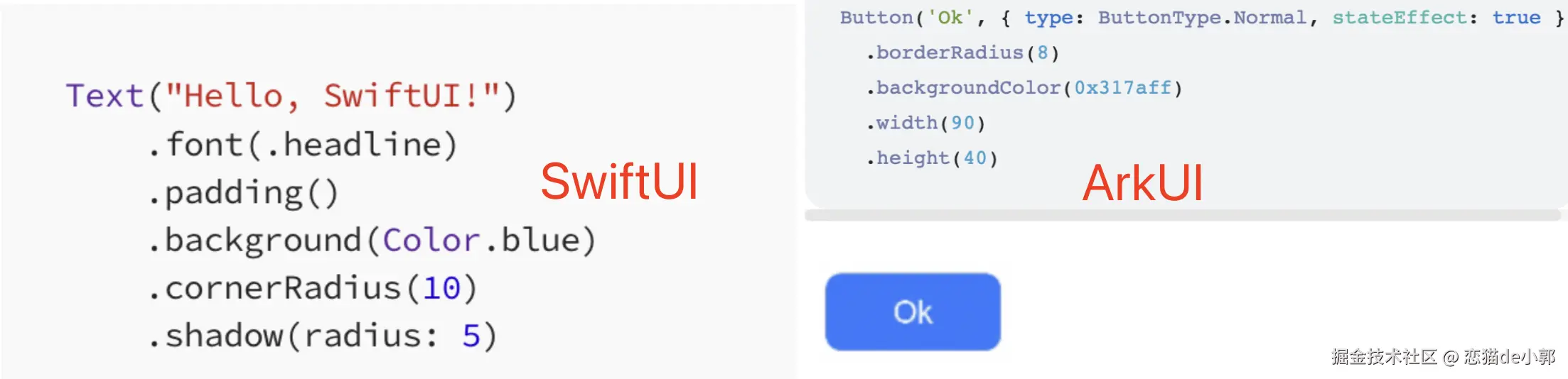这就很有意思了,我们对比现有 SwiftUI 和 ArkUI 的实现,好家伙,Flutter 这是在准备把自己 SwiftUI/ArkUI 化吗?