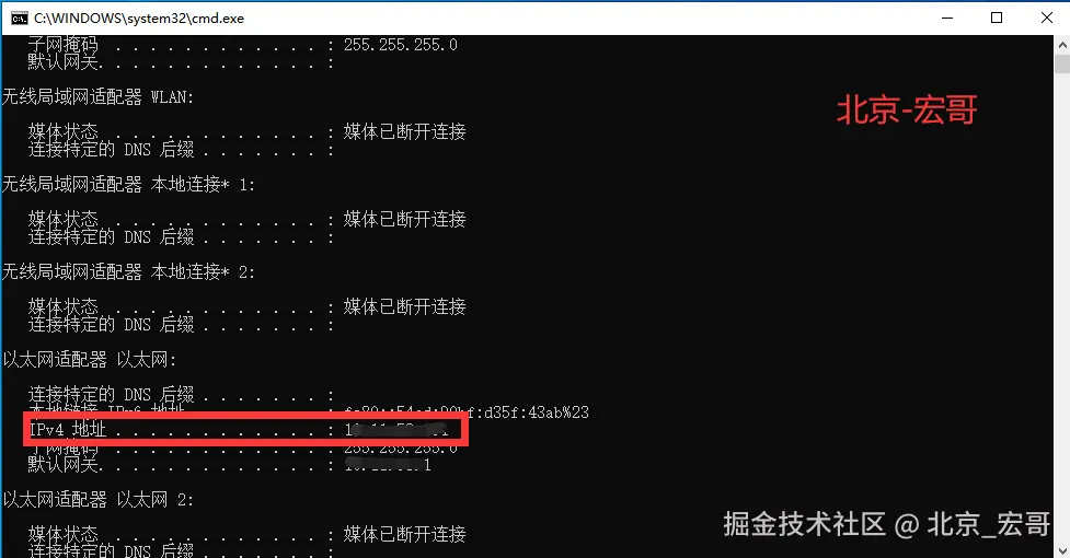 2.查看电脑IP地址。