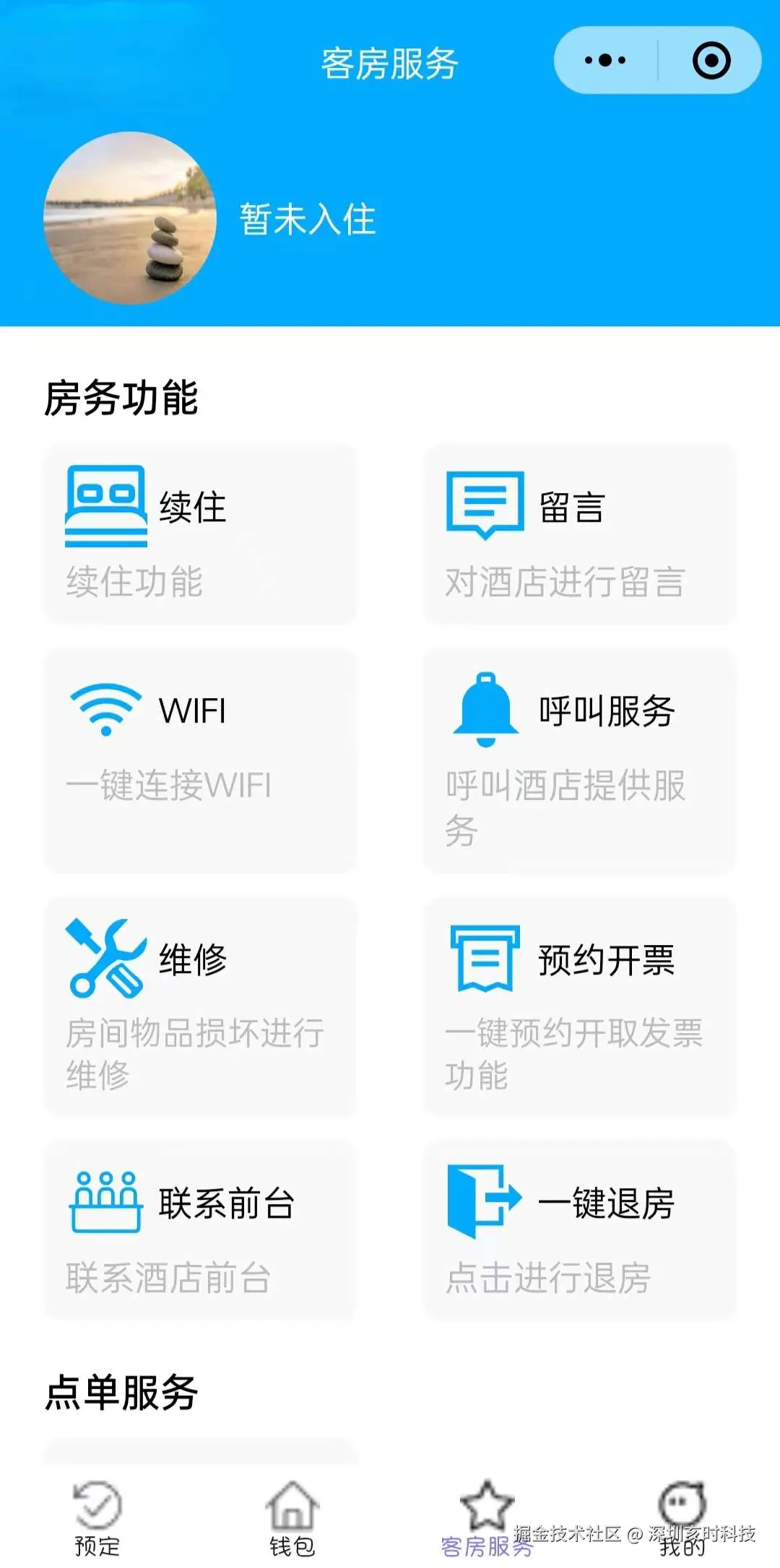 管理端 系统管理 首页:提供系统概览和快捷入口。 角色管理:定义系统中角色的权限。 用户管理:管理平台用户账户。 岗位管理:管理组织内的岗位信息。 菜单管理:管理系统菜单项。 字典管理:维护系统中使用的数据字典。 系统配置:配置系统的各项参数。 系统监控:监控系统运行状态。 客房管理 房态管理:监控和更新客房的状态。 房价管理:设置和调整客房价格策略。 订单:处理客户预订订单,包括订单的创建、修改、取消和结算。 营销:策划和执行营销活动,包括广告、促销和客户忠诚度计划。 库存:管理酒店的库存,包括客房用品、餐饮资源等。 房务:负责客房的日常管理和服务。 报表:生成和提供酒店运营相关的各类报表。 小程序端 预定 房型选择:用户可以选择适合的房型。 地理位置搜索:搜索附近的酒店。 入住与离店日期选择:选择入住和离店日期。 预定优惠:提供优惠券和积分兑换。 会员中心:会员可以享受优惠和特权。 我要办卡:用户可以申请成为会员。 客房服务 设施:查看酒店设施。 留言:用户可以留言提出建议或反馈。 WIFI:连接酒店提供的WIFI。 叫醒服务:设置叫醒服务。 维修:报告房间内物品损坏,请求维修服务。 预约开票:一键预约开取发票。 一键退房:快速办理退房手续。 点单服务:在线点餐或预定服务。 我的 入住订单:查看已入住的订单。 点餐订单:查看点餐记录。 服务订单:查看服务请求记录。 收藏酒店:收藏喜欢的酒店。 常住联系人:保存常用联系人信息。 我的发票:管理发票信息。 客服电话:提供客服联系方式。 关于我们:提供平台的详细信息。 H5端 首页:提供系统概览和快捷入口。 预定 房型选择:用户可以选择适合的房型。 地理位置搜索:搜索附近的酒店。 入住与离店日期选择:选择入住和离店日期。 预定优惠:提供优惠券和积分兑换。 会员中心:会员可以享受优惠和特权。 我要办卡:用户可以申请成为会员。 客房服务 设施:查看酒店设施。 留言:用户可以留言提出建议或反馈。 WIFI:连接酒店提供的WIFI。 叫醒服务:设置叫醒服务。 维修:报告房间内物品损坏,请求维修服务。 预约开票:一键预约开取发票。 一键退房:快速办理退房手续。 点单服务:在线点餐或预定服务。 我的 入住订单:查看已入住的订单。 点餐订单:查看点餐记录。 服务订单:查看服务请求记录。 收藏酒店:收藏喜欢的酒店。 常住联系人:保存常用联系人信息。 我的发票:管理发票信息。 客服电话:提供客服联系方式。 关于我们:提供平台的详细信息。