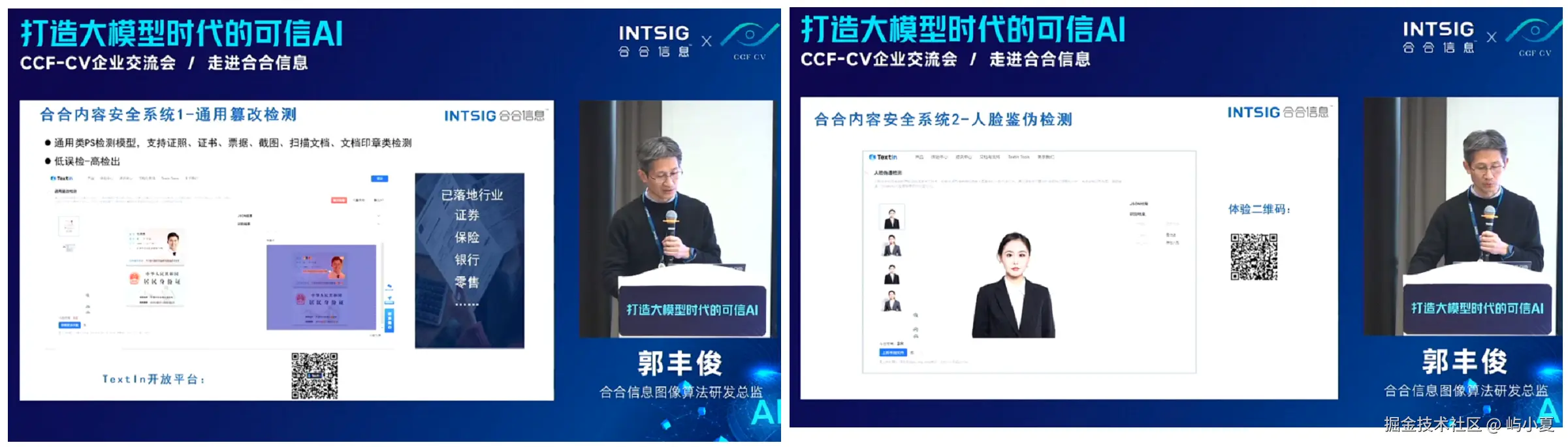 本次的论坛正是基于这一背景应运而生,旨在通过学术界、产业界的深入交流,探索AI安全的技术路径与治理框架,为推动AI的可信发展提供可行的方案和战略。通过与合合信息的紧密合作,论坛特别关注计算机视觉领域的最新进展,围绕如何通过技术手段确保AI的安全性展开讨论。