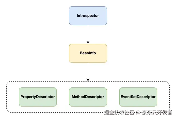 - 用于获取Bean的整体信息,包括属性描述符、方法描述符和事件描述符等