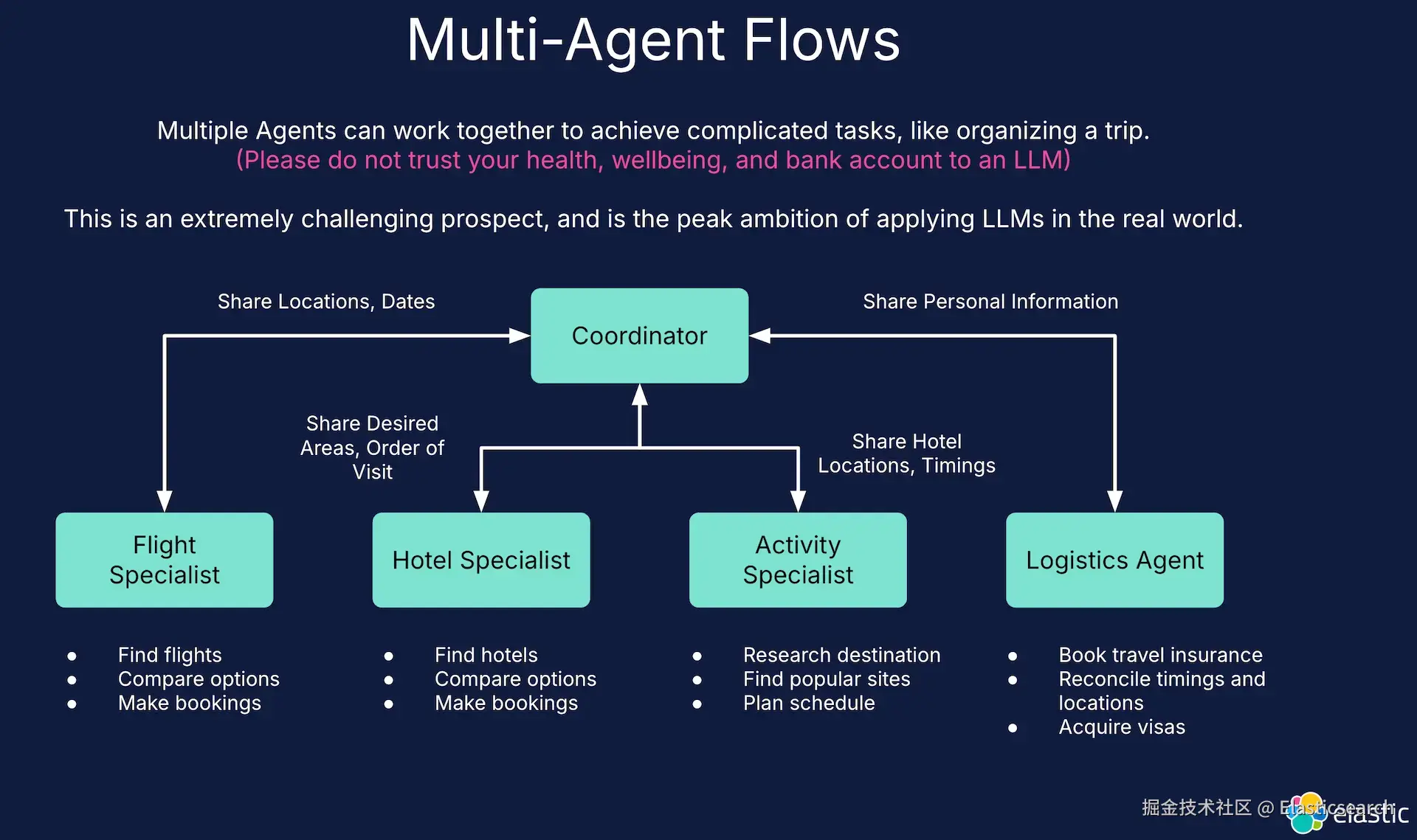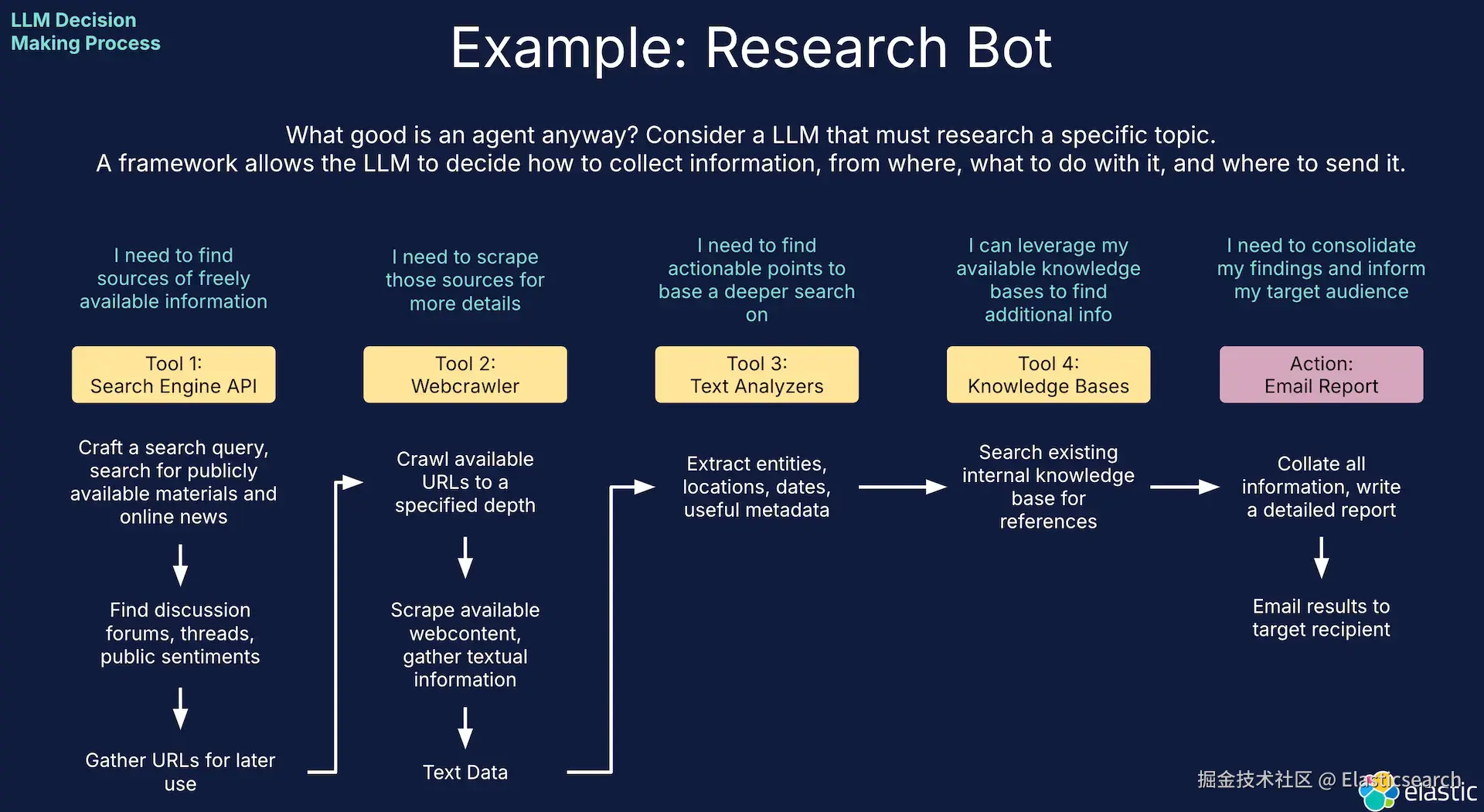 讨论并实现 Elastic RAG 的代理流程,其中 LLM 选择调用 Elastic KB。