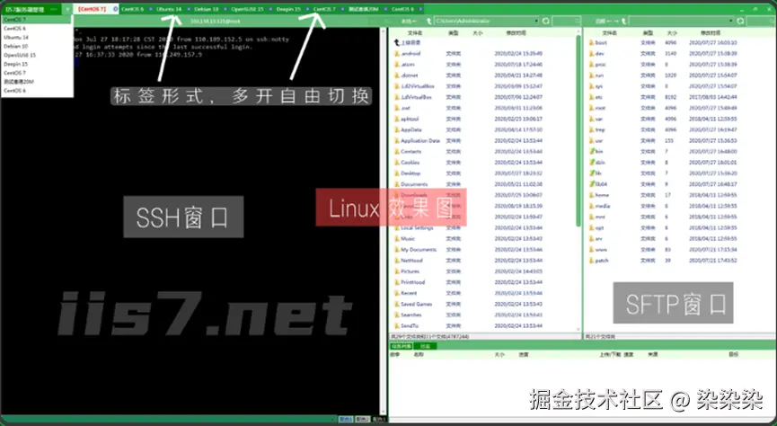 若要连接SSH服务器,保存设置后,双击对应的服务器条目,就能迅速建立连接,随即呈现出熟悉的SSH界面,在此可流畅执行各类命令行操作;如果涉及SFTP文件传输时,操作同样便捷高效,添加服务器信息后,会直观展现SFTP图形界面,以可视化图片形式清晰呈现文件资源,拖拽文件图标即可轻松达成上传、下载任务,传输进度一目了然,如图所示: