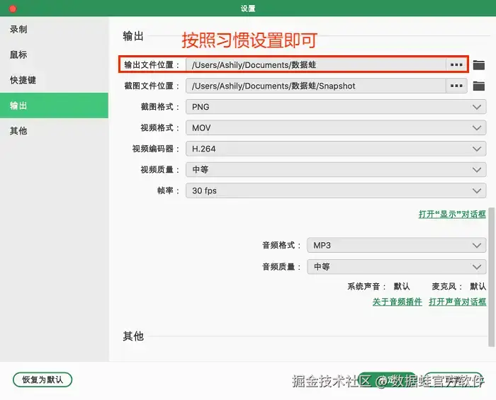 备注:Mac录屏文件在哪个文件夹?如果你在录制前自定义了保存路径,那么文件就会保存在你指定的位置。如果你没有自定义保存路径,数据蛙录屏软件通常会默认保存在一个叫做“数据蛙录屏”的文件夹里。