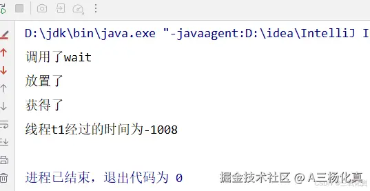 当我们t1线程 一直获取不到 object对象的时候,t1会一直等待,直到一秒后 t2运行在同一个类中放置,然后t1 被唤醒,再次运行