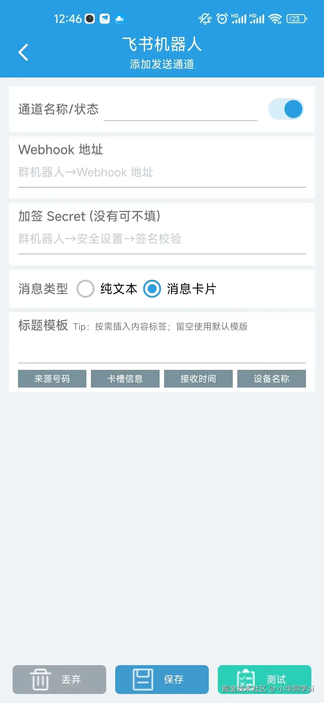 SmsForwarder是一款开源的短信转发器APP,不仅能够转发短信,还能监控手机来电、APP通知,并根据用户设置的规则,将信息转发到其他手机或平台。这款APP适用于多种场景,如钉钉群、企业微信群、飞书机器人等,满足用户的不同需求。
