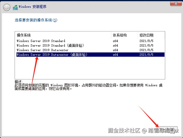 5)没有windows server 2019的版本,选了一个接近的版本,下一步