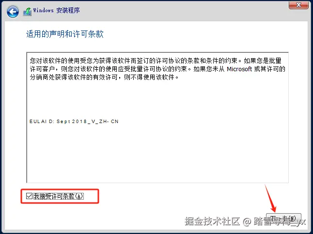 4)勾选我接受条款,下一步