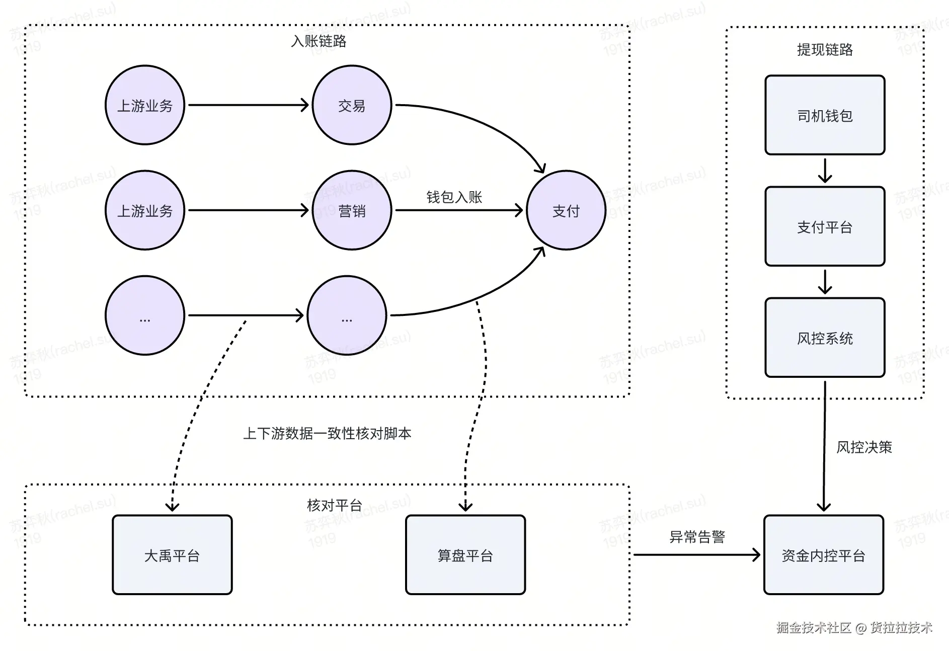 - 司机入账:在收入入账前,会经过各端系统的风控规则校验。然而,这一环节仍存在部分无法完全规避的风险,例如刷单套现、技术异常导致的入账问题。