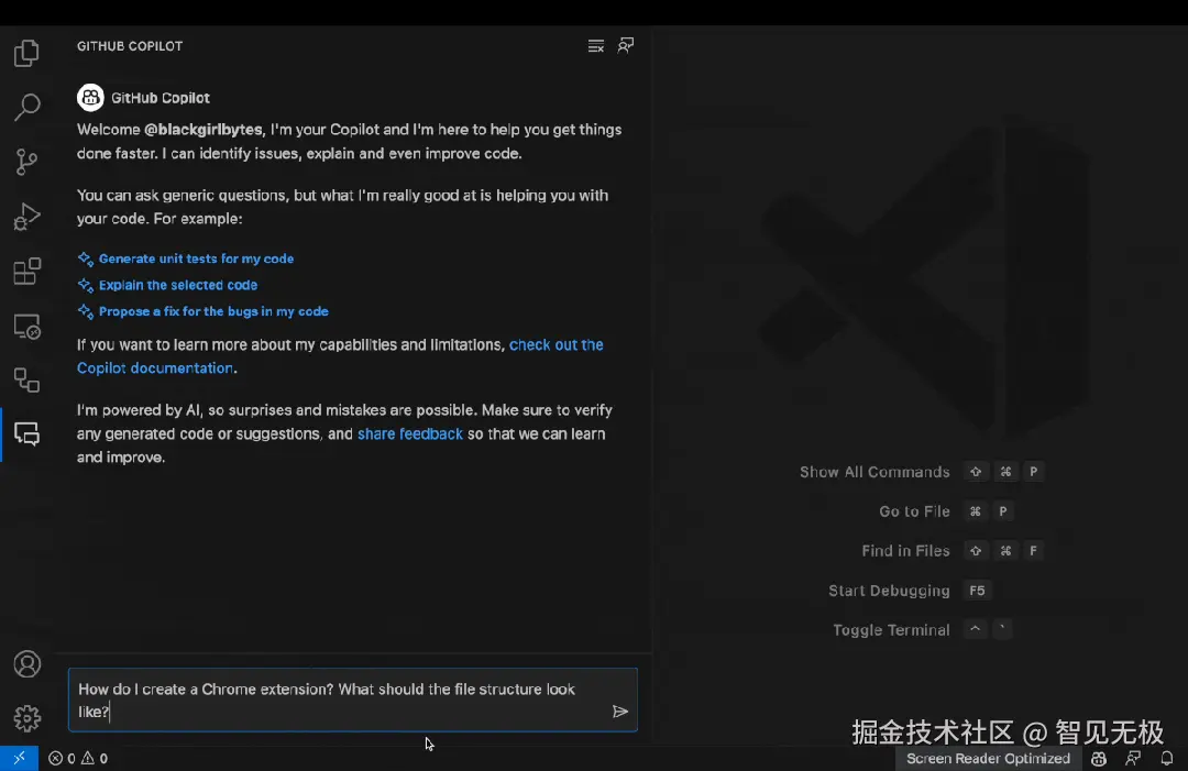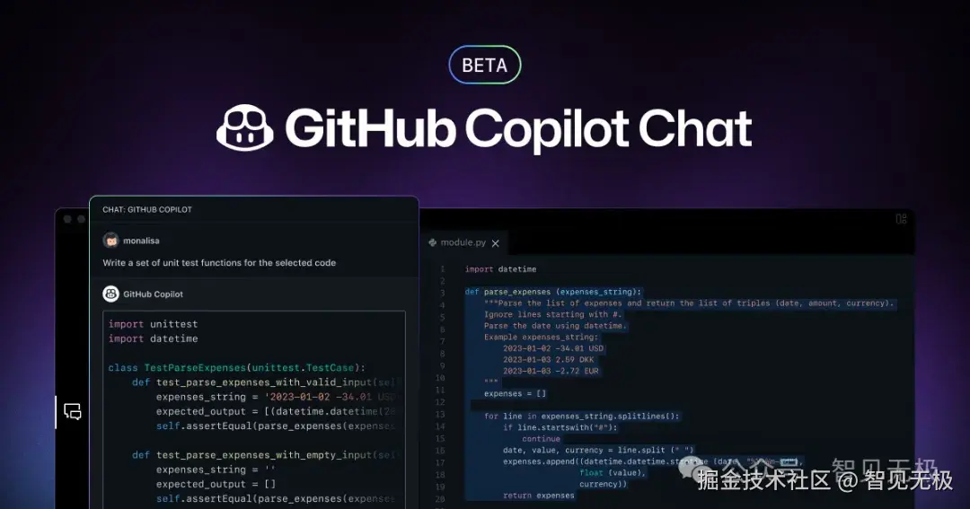 GitHub Copilot Chat 是一个强大的工具,它集成在 Visual Studio Code(VS Code)中,可以帮助开发者通过提供代码建议、解释代码、生成单元测试和建议代码修复来提高编码效率。