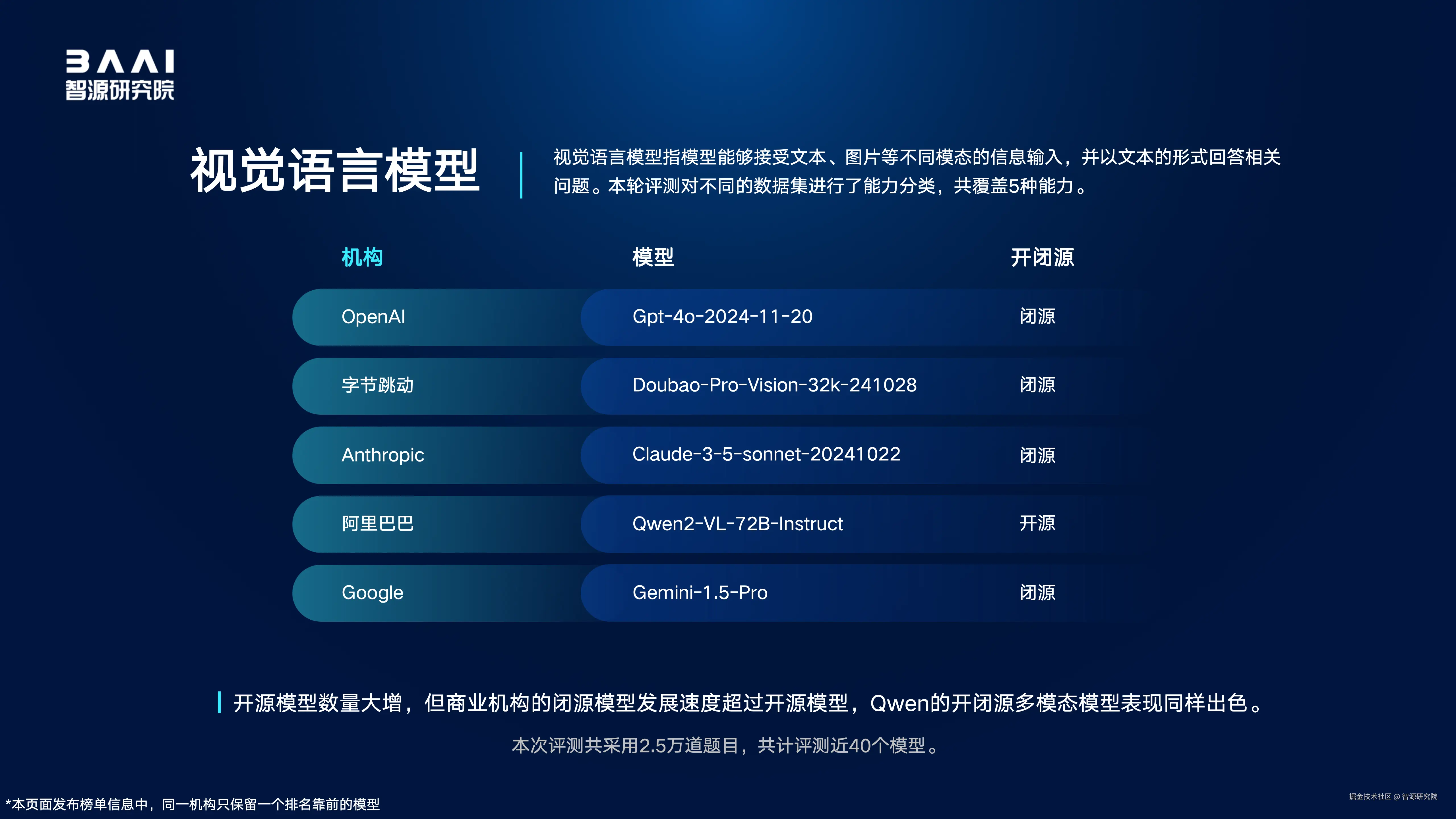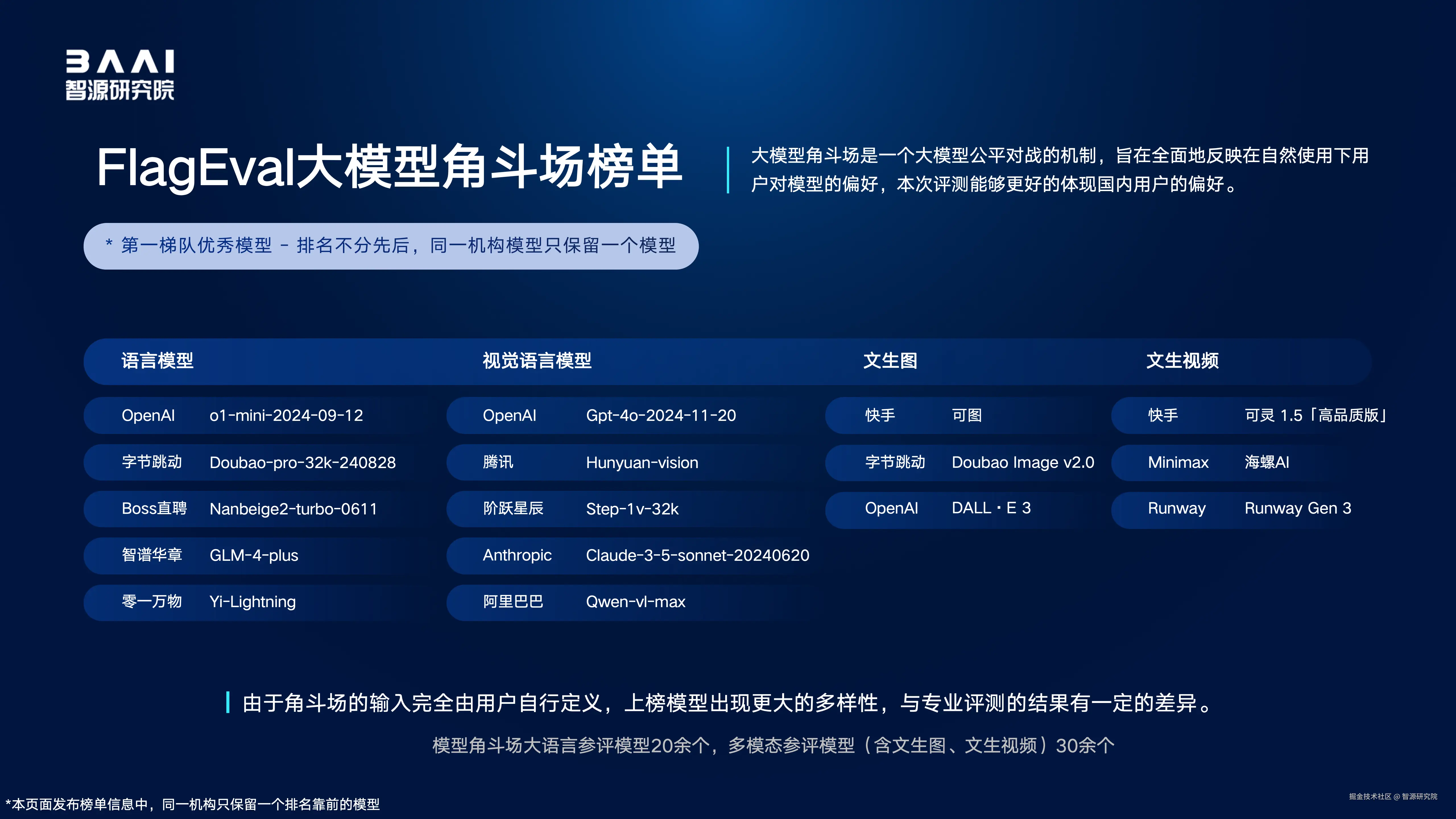 2024年12月19日,智源研究院发布并解读国内外100余个开源和商业闭源的语言、视觉语言、文生图、文生视频、语音语言大模型综合及专项评测结果。