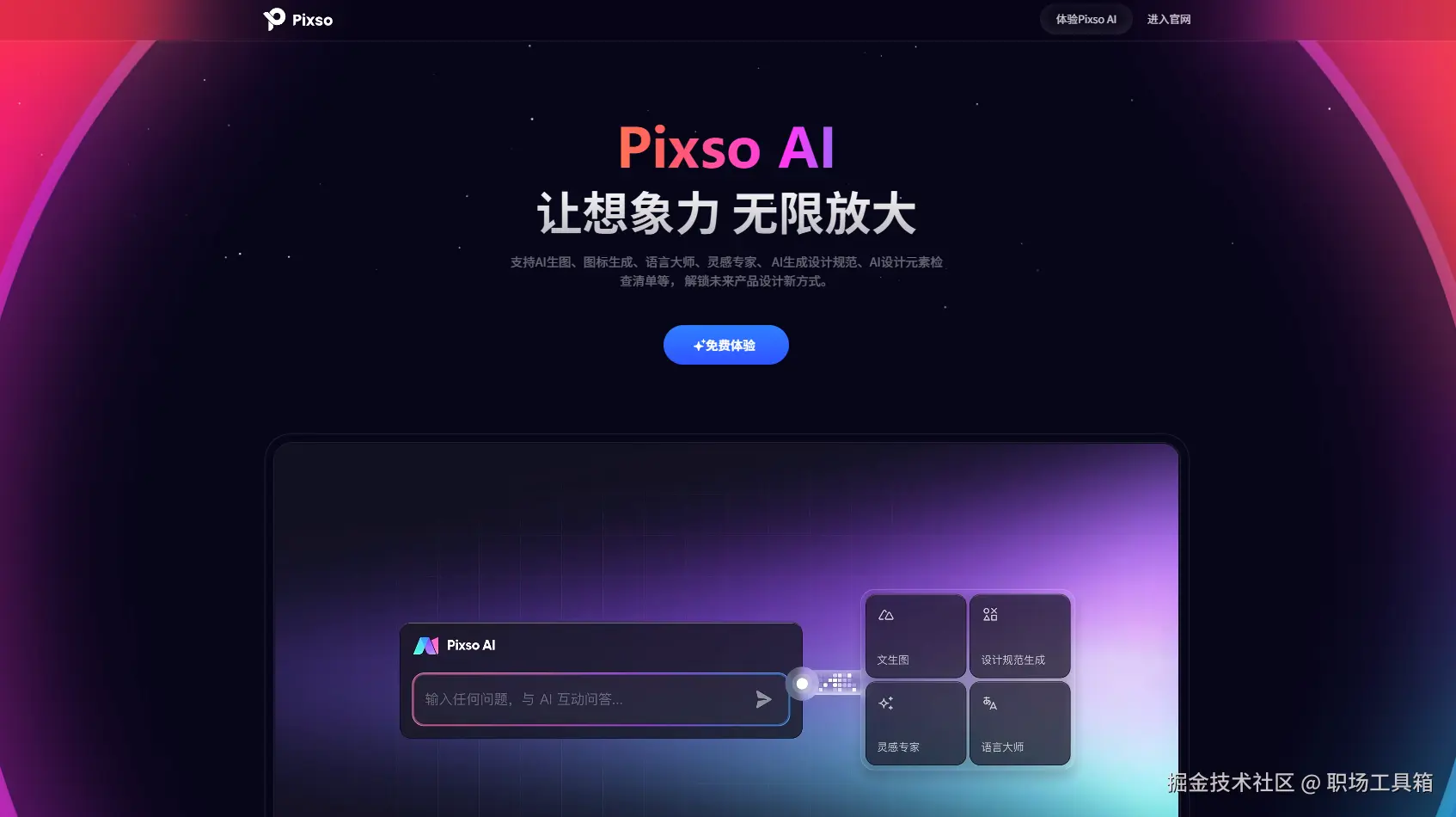 Pixso AI,是在线产品设计工具Pixso集成的智能助手,支持AI生图、图标生成、语言大师、灵感专家、 AI生成设计规范、AI设计元素检查清单等,解锁未来产品设计新方式。