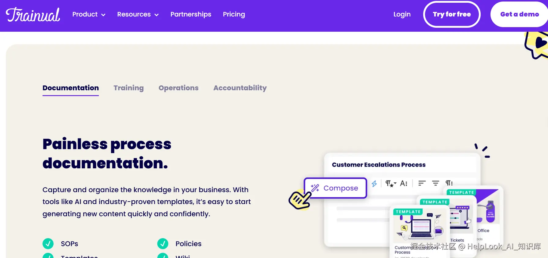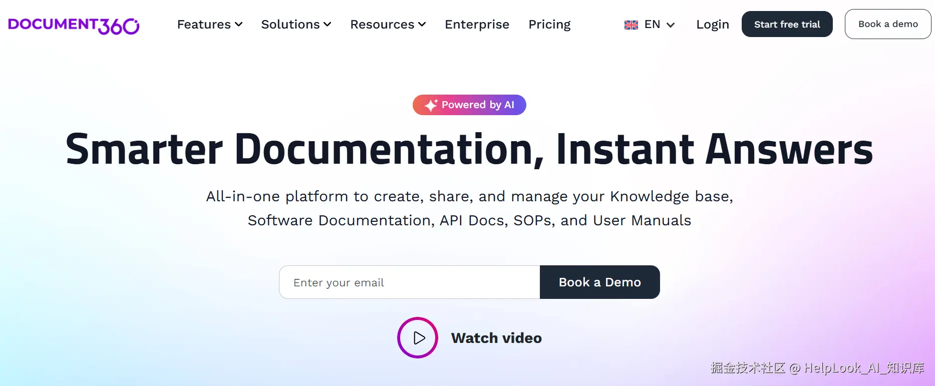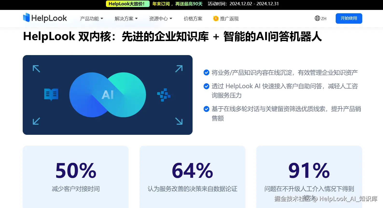 - 产品介绍:HelpLook是一款快速搭建AI知识库的系统,具备强大功能:快速精准的知识检索、灵活定制的文档系统,以及AI智能搜索。适用于各类企业规模。