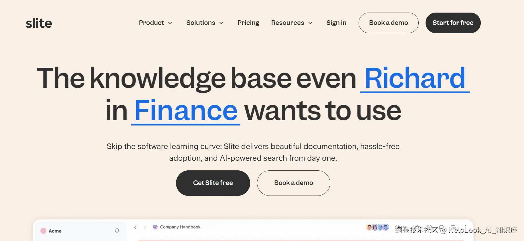 - 特点:智能组织知识,与Slack集成,专家验证。