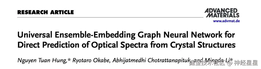 03、论文题目: Universal Ensemble-Embedding Graph Neural Network for Direct Prediction of Optical Spectra from Crystal Structures